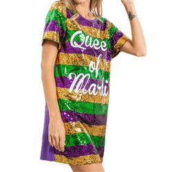Personalizado Mardi Gras Vestuário Roupas Femininas Lantejoulas T-Shirt Vestido Mardi Gras Lantejoulas Vestido Jersey Lantejoula