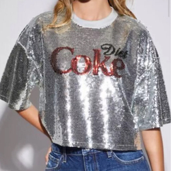Personalizado Y2K Prata Lantejoula Top T Shirt Rhinestone Sparkle Diet Coke Boxy T Shirts Diet Coke Lantejoula T-Shirt