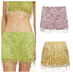 Mini Vestido Frisado Lantejoulas Conjunto De Vestido De Duas Peças Franja Rendas Lantejoulas De Duas Peças Shorts Saia Set Lantejoulas Frisadas Conjuntos De Duas Peças