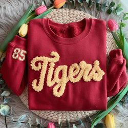 Personalizado Chenille Fio Hoodie Equipe Espírito Dia Jogo Camisola Fio Chenille Remendo Fuzzy Camisola Bordada Fio Camisola