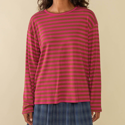 Top Rid Knit Camisa De Listras De Algodão Com nervuras Manga Longa Camisa de Manga Longa Oversized para Mulheres T-Shirts De Manga Longa Listrada